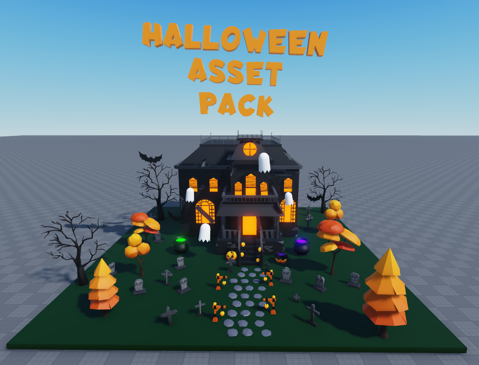 A Low poly and stylised asset pack consisting of a variety of high quality decorations for halloween and a haunted house scene, all to add a spooky element to your game for Halloween! The pack consists of the Haunted house scene, the model of the haunted house, a set of textured decoration assets and another set of the same assets without textures for you to show your creativity on! I mainly designed this pack for use on Roblox, but the file also consists a set of FBX files and the textures of the models, making the assets fit to be used on all platform! Feel free to tag me on Twitter/ X for any builds you make with this pack, I would love to see the beautiful creations you guys will come up with ?. Good luck guys and Happy developing!